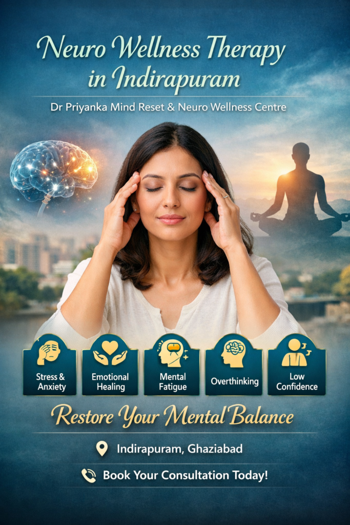 Neuro wellness focuses on improving brain health, emotional balance, and mental clarity. At Dr Priyanka Mind Reset & Neuro Wellness Centre in Indirapuram, we provide holistic neuro wellness therapies for stress, anxiety, overthinking, emotional trauma, and mental fatigue.